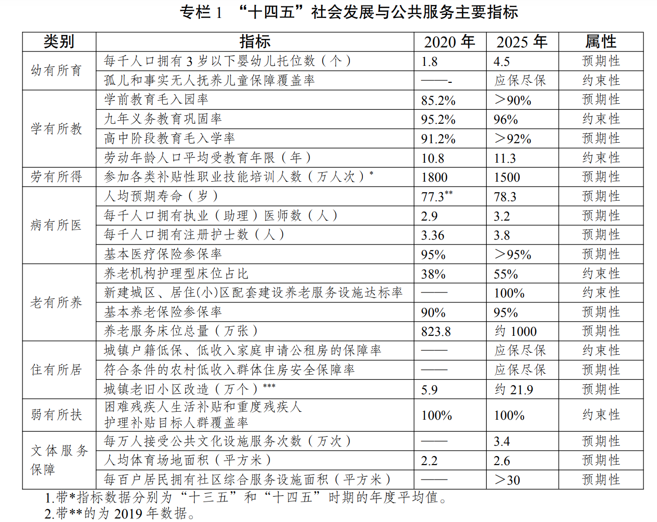 《规划》内容主要涵盖幼有所育、学有所教、劳有所得、病有所医、老有所养、住有所居、弱有所扶、优军服务保障和文体服务保障等领域的公共服务,规划期为2021-2025年。