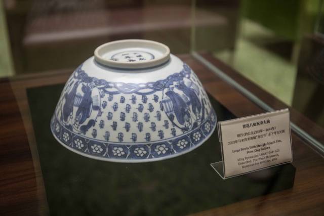 自秦汉海上丝绸之路兴起以来,瓷器就是中国古代海外贸易中十分重要的输出商品。此次展出的青花莲瓣形开光花鸟盘、青花八角形八仙碗、青花八仙祝寿大碗都是“万历号”沉船打捞的瓷器,属于典型的明代克拉克瓷的制作手法,有极高的史学价值和美学价值。