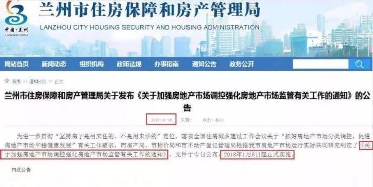 2018年1月5日,兰州市住房保障和房产管理局出台了一项新政策。与“人才政策”欲遮还羞不同是,这次是实打实地取消了限购。1月5日晚,兰州市住房保障和房产管理局、兰州市物价局、兰州市不动产登记管理局下发《关于加强房地产市场调控强化房地产市场监管有关工作的通知》。
