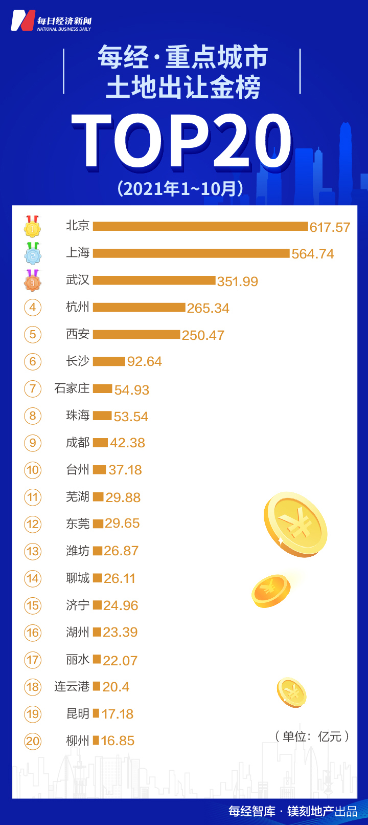 从单月情况来看,2021年10月,全国多个城市土地出让金和土地成交面积均大幅下降。