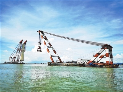 60小时封航交通管制 金海大桥第三座钢塔完成建设
