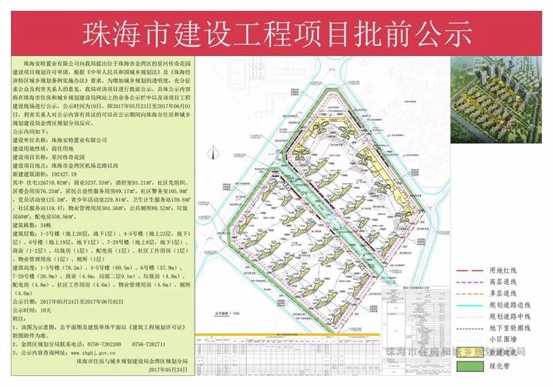 据了解,星河传奇花园位于金湾区红旗镇金湖大道以南,机场北路以西,占地面积133930㎡,总建筑面积为192427.19㎡,其中住宅建筑面积126710.25㎡,商业5237.53㎡,规划建设29栋住宅,5栋配套及商业建筑,其中高层(19-26层)6栋、多层(8层)23栋。