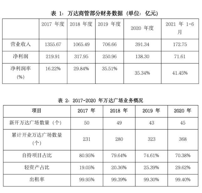 2019年,万达商管宣布从2021年起不再发展重资产,即不再投资持有万达广场物业,全面实现轻资产战略。