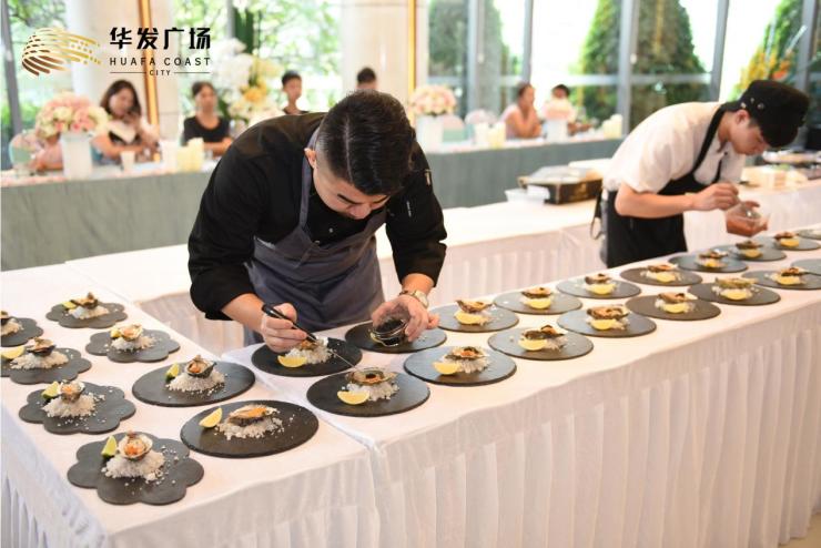 活动首日,华发广场特别邀请到享誉国际的米其林三星主厨Calvin。Calvin老师在现场开放空间中,直接制作佳肴,在他的手中雕琢,食物变成了一件件艺术品,以较佳的色香味呈现上台。