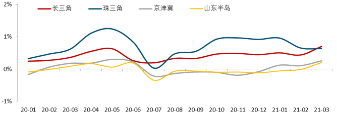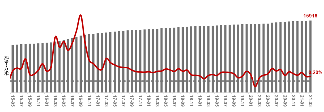 2015~2021年3月百城新建住宅均价及环比变化 来源:中指院