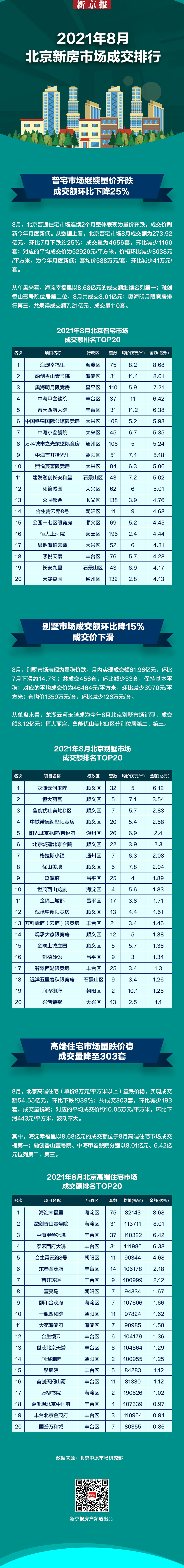 8月北京新房市场成交量价延续跌势,哪些楼盘逆势“领跑”?