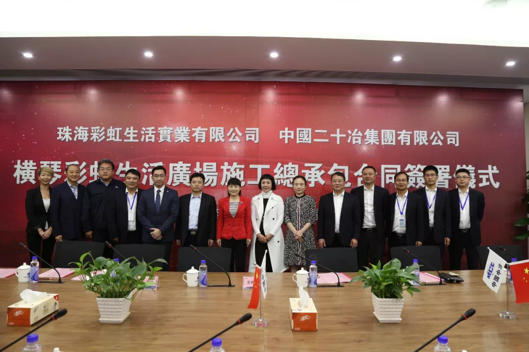 2018年3月28日,中国二十冶集团与澳门彩虹集团在横琴举行彩虹生活广场项目签约仪式。横琴新区管委会副主任邹桦,澳门事务局副局长李娟,澳门贸易投资促进局高级经理黄伟伦;澳门彩虹集团总裁萧婉仪、总经理梁加祈;中冶集团副总工程师、中国二十冶集团副总经理、中国二十冶广东公司总经理王振智,中国二十冶广东公司党委书记冷绪中、常务副总经理邹树荣等参加签约仪式。中冶集团副总工程师王振智与澳门彩虹集团总裁萧婉仪代表双方在项目施工总承包合同上签字。