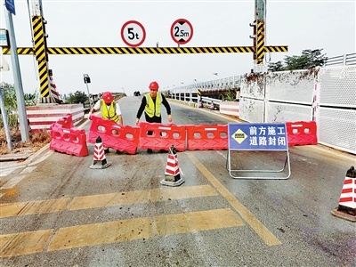 “大桥封闭了,请走旁边的便道。”在上横大桥东侧桥头,交通协管员正在进行交通引导。16日上午9时,斗门区莲洲镇上横大桥正式封闭。这意味着有着33年历史的上横大桥完成使命,即将被拆除原址重建。重建期间,大桥北侧已经建成的便道开通使用。