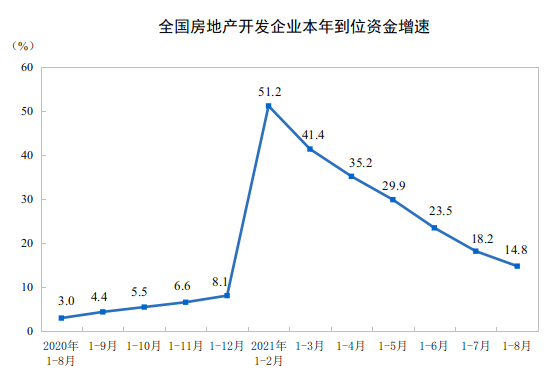 9月15日,国家统计局公布2021年1-8月全国房地产销售情况显示,全国商品房今年累计销售额和销售面积环比增速已经连续6个月下滑。