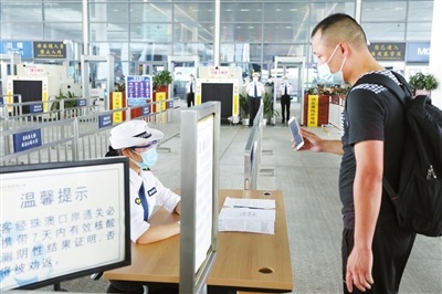 澳门出境大厅里的旅客也非常少,记者等待了15分钟才有3位旅客进入大厅,其中一位黄小姐告诉记者,自己在手机上进行健康申报,7天内有效的核酸检测报告弹出并生成绿色健康码后便获放行。