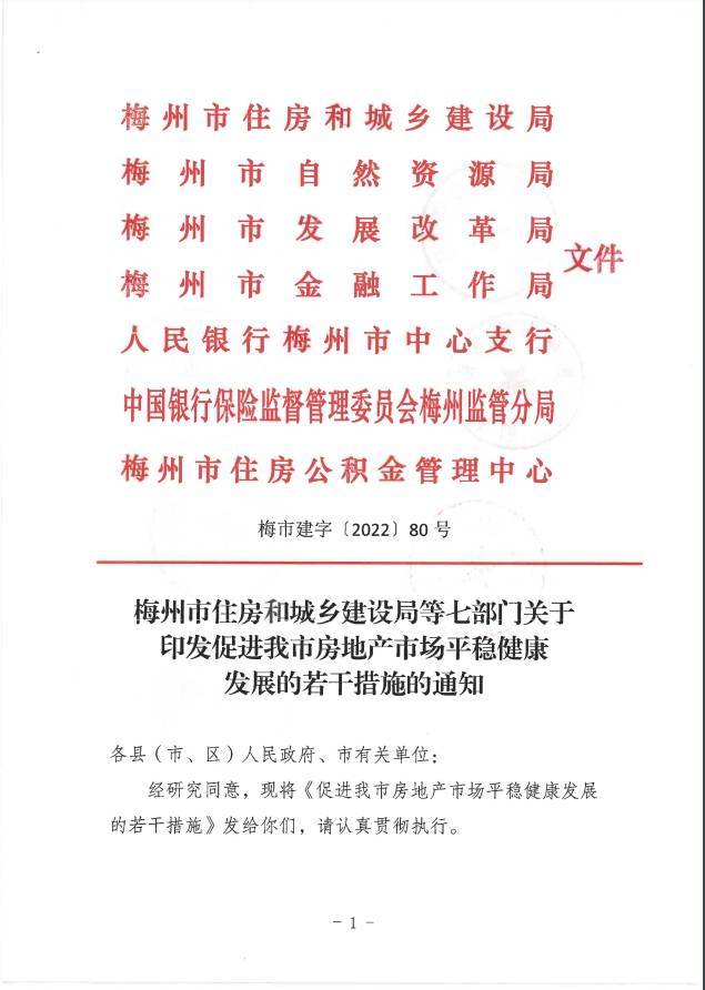 据广东省梅州市人民政府网站5月1日消息,梅州市住房和城乡建设局等七部门关于印发促进该市房地产市场平稳健康发展的若干措施的通知。