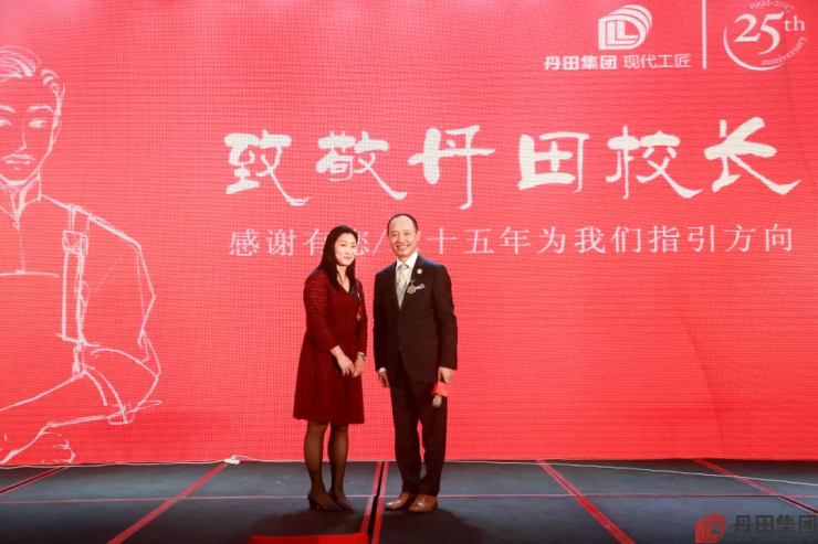 与丹田一起走过25年历程的老员工徐慧珍,代表丹田6000名员工,向高董表达了大家的感谢之情,并向高董赠送了精心制作的“丹田校长”徽章。