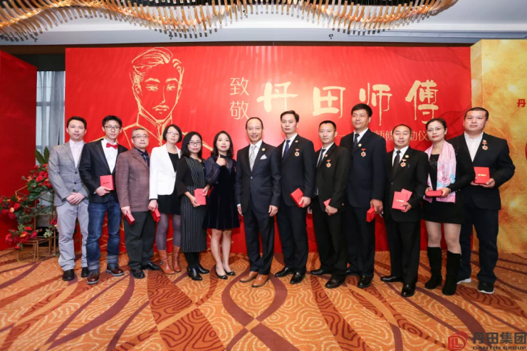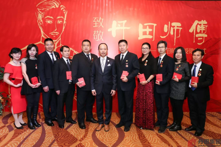 下午4点,授勋仪式开始。丹田集团董事长高志东分别为到场的“丹田师傅”代表进行授勋,并与他们合影留念。