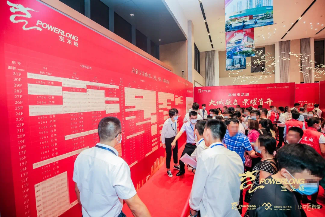 晚上7点,高新宝龙城正式开盘,来访者超千人,当晚劲销10亿,去化率高达八成,人气火爆程度,堪称少有!