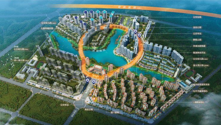 项目拥有约300亩原生态湖境公园,面积超20万㎡,约4公里环湖栈道,3所公立幼儿园、2所优质小学及约7000㎡商业康体中心,另有运动公园守护业主健康。(学童最终入学安排,按照当地机构及教育部门公布为准)