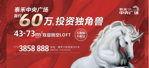泰禾中央广场,湾区头筹资产,投资优选,约 43-73㎡双层挑高LOFT,首付60万起,火热销售中,全城争藏,分秒递减!