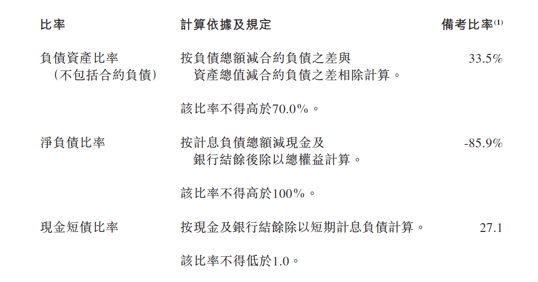 中国文旅指出,该比例由2018年的632%下降至272.2%,是由于2019年的利润及全面收入总额有所增加,以及部分应付股东款项资本化作对集团的出资,导致股本增加所致。而降至2020年的37.9%是因偿还银行及其他借款而下跌。根据中国文旅披露的“三道红线”数据显示,公司剔除预收款后的资产负债率为33.5%;净负债率为-85.9%;现金短债比为27.1%,全部“达标”。