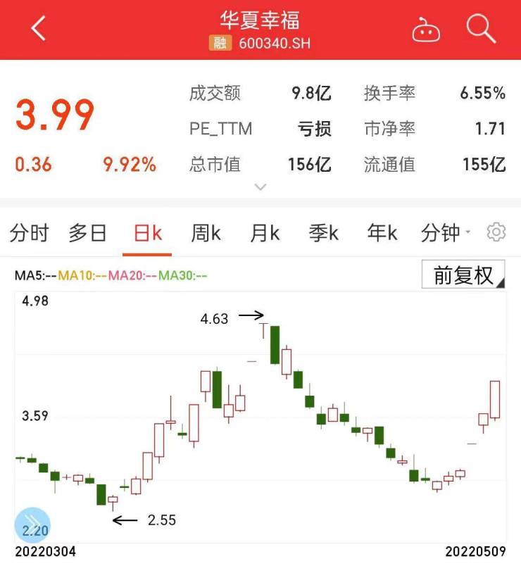 上交所交易信息显示,华夏幸福自5月5日节后开市至5月9日,连续3个交易日股价均涨停,从五一节前3元/股暴涨至3.99元/股,涨幅33%,总市值156亿元。