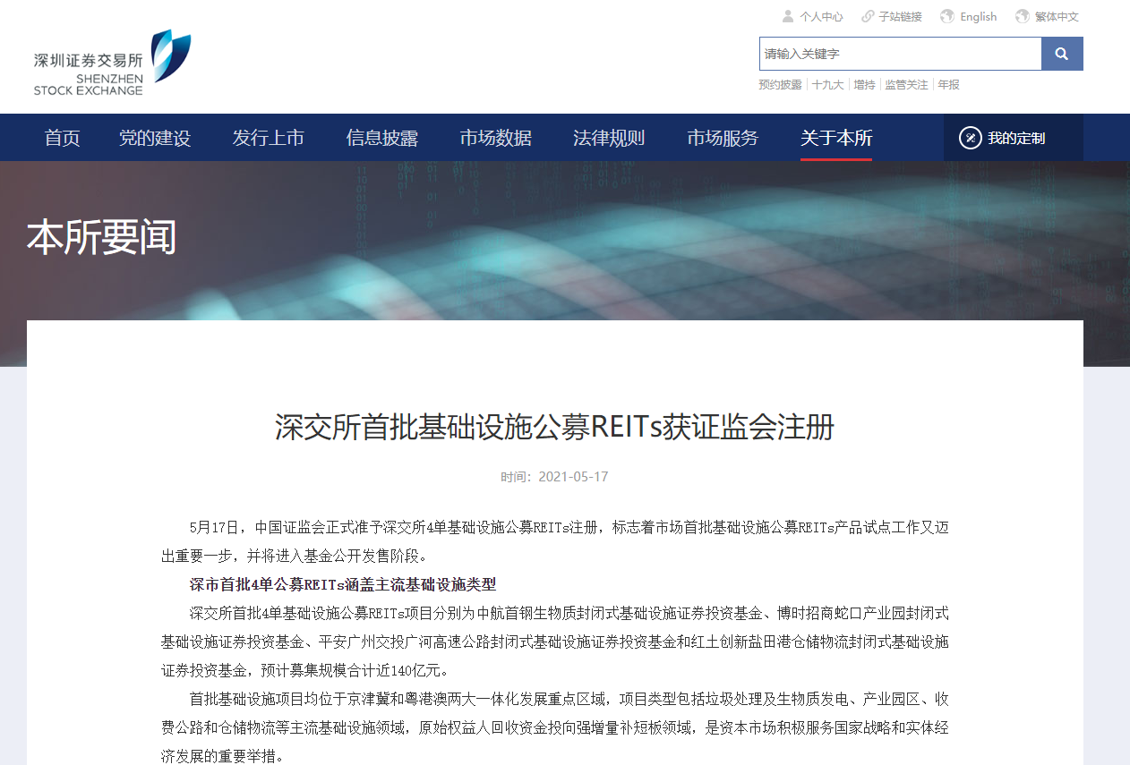 深交所首批四单公募REITs即将发售 规模合计近140亿元