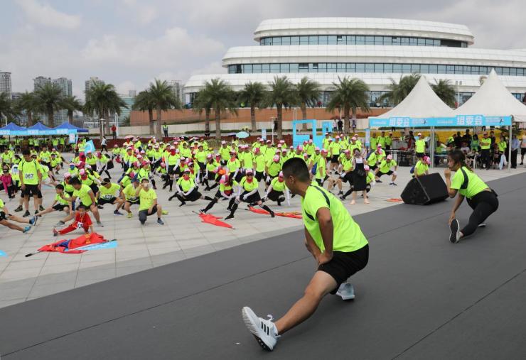 活动还特别邀请到了珠海田协运动员代立志和方凤明到场,通过几分钟简单的拉升动作,带领大家进行开跑前的热身运动。