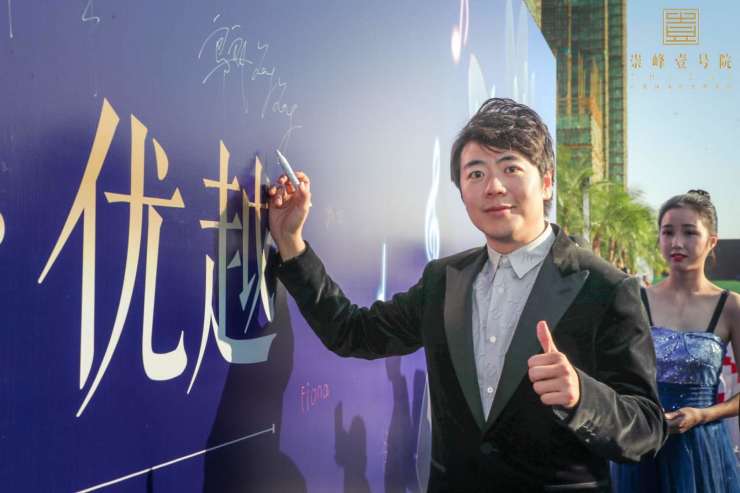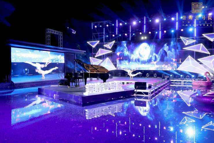 有郎朗必有音乐,崇峰地产为这次开盘活动和郎朗代言发布会精心准备的设听盛宴于晚7时拉开帷幕,绚彩的灯光和美妙的音乐,以“郎朗代言,琴动之夜”为主题的文艺演出让在场的每一个人沉浸在浪漫的欢乐海洋。香港歌星泳儿、林志美、著名歌手祖儿、艾哲的激情献唱,演绎出崇峰壹号院的华美乐章,郎朗大师的高徒毕烨、吴思雨、钢琴小王子陈灏彤的钢琴独奏,弹奏出崇峰壹号院的内涵与品质,当郎朗大师出现在水池中央“斯坦威”钢琴旁时,整场活动最激动人心、最令人期待的压轴大戏登场,郎朗阐述了他用音乐品味人生的追求,当他坐在钢琴边,现场掌声、尖叫声不断,氛围达到了较高点,郎朗深情弹奏了一曲肖邦的“夜色”,映衬出崇峰壹号院的美丽之夜,让在场的人如痴如醉,能现场听到郎朗的琴声,实属美妙的享受。