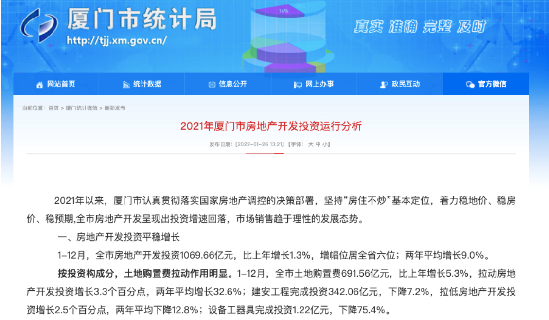 近日,厦门市统计局官网发布《2021年厦门市房地产开发投资运行分析》(以下简称《运行分析》)指出,要做好“房地产税”试点落地厦门的前期准备工作,以防止全市房地产市场出现大的波动。