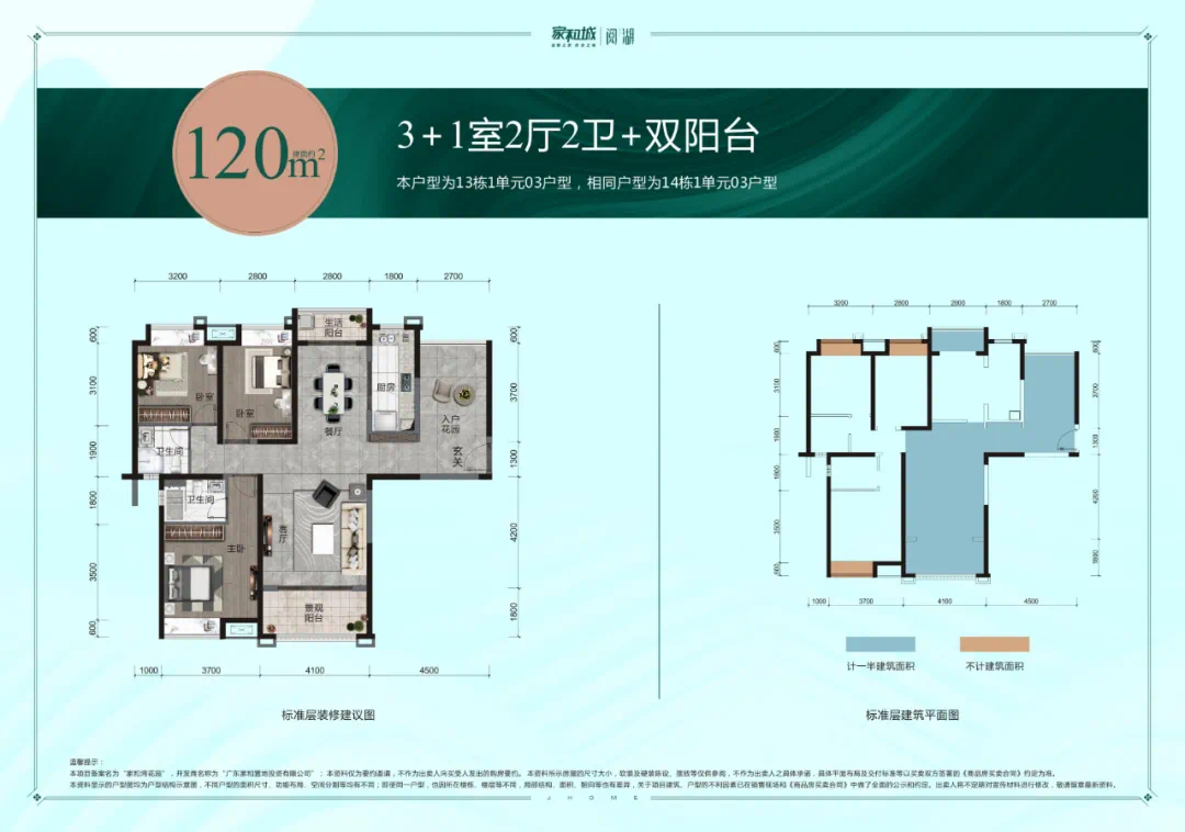 建面约120㎡3+1房2厅2卫双阳台示范单位