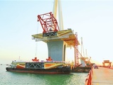 记者从中铁大桥局珠机城际项目部获悉,11月9日,珠海金海大桥第三台750吨架桥机试吊成功,完成首节标准段钢箱梁架设。